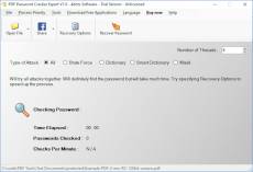 Keywords: pdf password cracker, unlock pdf, unlock pdf file, remove pdf password, pdf unlocker, pdf password unlocker, crack pdf password, pdf password recovery, cracker PDF Password Cracker Expert - Unlock pdf documents easily - Versatile and effective pdf password unlocker that can unlock pdf file easily Have you lost your PDF password ? Have you downloaded a PDF document and you do not know the password ? Then this pdf password unlocker is for you. PDF Password Cracker Expert will unlock pdf file quickly. You can use 5 types of attacks to crack the PDF password. Brute Force, Masked Brute Force, Dictionary Attack, Smart Dictionary Attack and Mask Attack. PDF Password Cracker Expert can handle multiple dictionary files and provides also very effective dictionary text files. Smart Dictionary Attack comes with vast options and commands to try smart mutations of the possible passwords found in dictionary files. For example, it will try all the possible uppercase and lowercase combinations of the password. Add numbers,special characters or letters to it. Duplicate it, reverse it, reflect it e.t.c., Replace specific characters of it or add a masked prefix or suffix to the password and much more ! PDF Password Cracker Expert is very simple to use. Simply 1. Open the PDF document 2. Specify the type of attack. 3. Press the "Recover Password" button and wait. You can pause or stop the PDF password recovery process at any time, even close the application and resume it on another day from the point it was stopped. This PDF password unlocker is multilingual and translated into 39 different languages and can be started also with a right click on the PDF document in Windows Explorer. PDF Password Cracker Expert is the best choice for a PDF cracker and will unlock pdf file easily. It does support encryption with 40/128 bit with password and PDF versions 1.2 through 1.4. The application is multithreaded and you can specify how to many threads to run. It is versatile and effective. It has many features that optimize the PDF password cracking process.