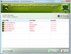 Keywords: Dreamweaver password recovery, Dreamweaver password, Dreamweaver password crack, hacking Dreamweaver password Dreamweaver Password Decryptor is the FREE software to instantly recover web server passwords stored by Adobe Dreamweaver. Dreamweaver is the industry-leading web authoring and editing software that provides capabilities for creating websites. To make web integration easier, Dreamweaver stores web server details including login passwords for services such as FTP, Webdav in a secure encrypted format. Dreamweaver Password Decryptor helps in quickly recovering all these encrypted webserver passwords from its local store. New version v2.0 supports password recovery from Dreamweaver CS 5.5 & CS 6 editions. Here are the main features * Instantly decrypt and recover stored web server (FTP, Webdav) passwords by DreamWeaver * Supports latest version including Adobe Dreamweaver CS4 & CS5 editions. * Recover password of any length and complexity. * Presents both GUI and Command-line Interface. * Useful for Penetration Testers & Forensic investigators. * Save the recovered password list to HTML/XML/TEXT/CSV file * Support for local Installation and uninstallation of the software. Dreamweaver Password Decryptor works on most of the Windows platforms starting from Windows XP to Windows 8.