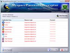 Keywords: Myspace password, Myspace im password, Myspace password recovery, Myspace password hack, crack Myspace password Myspace Password Decryptor is the FREE software to instantly recover Myspace Account passwords stored by MySpace IM, popular web browsers and other instant messengers. It presents both GUI interface as well as command line version making it useful tool for Penetration testers & Forensic Investigators. Myspace Password Decryptor supports recovery of Myspace Account passwords from following applications * MySpace IM * Firefox * Internet Explorer * Google Chrome * Opera * Safari * Flock * Pidgin (Formerly Gaim)Messenger Once the password is recovered you can back up to HTML/XML/TEXT/CSV file format. Myspace Password Decryptor works on most of the Windows platforms starting from Windows XP to new Windows 10 version. For advanced features, check out our new Social Password Recovery Pro Enterprise Edition at http://xenarmor.com/social-network-password-recovery-pro-software/