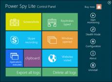 Keywords: power spy lite, power spy software, spy software, spy, surveillance, surveillance software, monitoring, monitoring software, keylogger, key logger, spying Power Spy Lite Software lets you know exactly what people do on a computer while you are away. It secretly logs Facebook, Twitter, keystrokes, chats & IMs, emails, websites visited, photos shared, videos watched, video talk, user names, passwords, applications run, internet searches and much more. Power Spy Lite records incoming and outgoing instant messages in Skype and Yahoo Messenger. It takes screenshots every x seconds like a surveillance camera pointing at the monitored PC. The spy software starts monitoring with system startup then runs silently and invisibly. Only administrator of the software can bring it back with hotkey and manage it. It automatically sends log reports to your specified email or, like every 30 minutes. You can check these reports on another remote PC, iPad or even a smart phone. You can also view logs directly from its control panel on the monitored PC. Power Spy Lite is perfect for catching cheaters, monitoring employees, children and spouse, protecting kids online, collecting evidence and even investigating crimes. It is loved by parents, employers, doctors and teachers. In the past ten years, it has helped thousands of parents protect their kids online from child molesters, drug dealers and malicious websites, and it has been installed on thousands of office computers to maintain employee discipline.