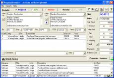 Keywords: invoice, receipt, quote, sales software, consulting, POS, order forms An easy to use, affordable paperwork solution for small companies and consultants. Easily create great-looking proposals, invoices, acknowledgements, and receipts for your customers and clients. Simple to use! You only need to enter in data 1 time, even as your document proceeds from being a Proposal to an Acknowledgement, then on to an Invoice, and finally becomes a Receipt. Do virtually all your work on a single computer screen form - no switching back and forth between different windows. If you've been wanting to get away from using pre-printed forms but haven't been able to find any reasonably priced software, this is the answer. Allows you to build a database of all the items you normally sell, including description, unit of measure, unit cost, and manufacturer. Simply double-click any item and it is instantly added to your document. Items can be added on-the-fly, so you can start being productive right away One-time items can be added to a proposal, plus stock items can be modified after being selected, without changing them in the stock list. Stores all your customer and destination addresses for re-use. You only need to type them in one time - from then on out you simply select from a drop-down list. It also automatically stores misc. info such as payment terms, authorization names, FOB points, job numbers, and more in easy to use drop-down lists. Saved documents can always be recalled later on for re-printing, general reference, or to be copied and used as the basis for similar new documents. The saved Proposal / Invoice list can be sorted by number, date, vendor, destination, ship date, or amount with one mouse click - no more rooting through file cabinets to find things! Also creates a number of reports to help you keep track of your business. Can either be installed on a single machine and store it's data locally, or installed on multiple machines and use a shared data directory.