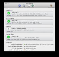 Keywords: disk, drive, hdd, hard, ssd, protection, crash, smart, s.m.a.r.t., r.a.i.d., raid, failure, prediction, safety SMARTReporter is an application that can warn you of some hard disk drive failures before they actually happen! It does so by periodically polling the built-in S.M.A.R.T. status of your hard disk drives as well as performing other checks for "I/O errors" or R.A.I.D "degradation". The current status of your hard disk drives is always easily recognizable because SMARTReporter changes its icon (optionally in the menubar) from green to red if a problem occurs. S.M.A.R.T. CHECKING SMARTReporter periodically checks the built-in S.M.A.R.T. status of all compatible connected disks. S.M.A.R.T. (Self-Monitoring Analysis and Reporting Technology) is a technology built into most modern hard disk drives that acts as an "early warning system" for pending hard disk drive problems. I/O ERROR CHECKING SMARTReporter has the unique capability to check the system kernel log-file for occurrences of dangerous "I/O errors" to improve the disk failure prediction accuracy. R.A.I.D. CHECKING SMARTReporter can automatically check whether connected R.A.I.D. sets become "degraded" or just "offline". DISK SPACE CHECKING SMARTReporter can also monitor the free disk space because a completely filled boot disk might lead to system lockups. NOTIFICATION OPTIONS SMARTReporter has completely customizable notification options for all four disk checks including notification via changing application icons, email, alert dialogue, on-screen notification (Growl or OS X 10.8 native), or by launching arbitrary applications / scripts. ADVANCED OPTIONS SMARTReporter supports a variety of advanced options and tools including automated S.M.A.R.T self-tests, scheduled S.M.A.R.T. attribute checking and plotting graphs of all acquired data over time. Please note that the S.M.A.R.T. self-test/attribute-check features aren't officially supported.