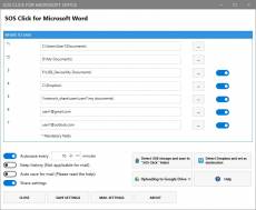 Keywords: word add-in, excel add-in, powerpoint add-in, save document many places, save document multiple places With SOS Click for Microsoft Office you can save your work across multiple locations in one click! Save your Word documents, Excel spreadsheets and PowerPoint presentations in more than one place with one action! Places can be both local on your computer like local folders, thumb/flash drives and remote like mapped network shares or drives, one or more e-mail addresses and cloud services for storing your files like Dropbox, Google Drive and Microsoft OneDrive. With this add-in you can say goodbye to all technical issues as your work will always be available: a local hardware failure, lose of internet connection and other issues will be a thing you won't have to be worry about as your work is saved in multiple places and is always available! Moreover, the add-in features several auto-save functions including saving automatically to the e-mail address of your choice so you never lose a single copy of your important work!