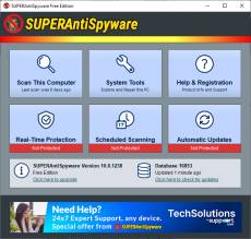 Company: Support.com Country: United States of America, CA, Sunnyvale ASP member: No Company Web site: https://www.superantispyware.com Site of program: https://www.superantispyware.com/ Application info: https://www.superantispyware.com/free-edition.html Author: Support.com Support.com Sales email: support@superantispyware.com Support email: support@superantispyware.com License type: Freeware Class: Security & Privacy::Anti-Spam & Anti-Spy Tools Specific: Utilities Categories: Security Tools :: Virus Removers, Security Tools :: Virus Scanners, Security Tools :: Online Privacy, Utilities :: Antivirus, Internet :: Online Privacy, Internet :: Security Platform: Windows OS: Win2000, WinXP, Win7 x32, Win7 x64, Windows 8, Windows 10, WinServer, WinOther, WinVista, WinVista x64 System requirements: 256MB Ram, Windows 7, Windows 8, Windows 10, Windows 11 Language: English Limitations: No limitations