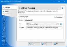 Keywords: free, freeware, outlook, add-in, add-on, send, messages, attachments This free utility sends an Outlook e-mail message using the specified account, sender's address, recipient lists, subject, message text, and file attachments. In addition, you can specify a, prepared in advance, Outlook message template in OFT or MSG format. Sending emails in one action is useful in many cases. Even simply sending mail, based on Outlook templates, becomes much simpler; instead of a whole series of actions, it requires only a single mouse click. Integration with Outlook rules allows you to send an e-mail message in response to incoming messages that meet the required conditions. The command line helps send the desired Outlook messages in your scripts and batch files. Thanks to the support of macros, the utility significantly enhances Outlook templates. Macros are special words in message subjects and texts that are replaced with the values of message fields, the current date, or Windows environment variables when sending. When configuring the utility, if you specify message field values along with a template, these values will be used, instead of stored in a template. It provides even greater flexibility and productivity. Creating an email by template, you no longer need to change the sender, recipients, attachments, and other fields each time. Also, it is not necessary to create a separate template for each set of field values. Just add a separate button on the Outlook ribbon or use the Utility Manager. A unique feature of the utility is the ability to specify the message text in the form of HTML source code, as well as automatic attachment of files from the specified folder on your disk drive or network share, based on specified criteria.
