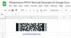 Company: IDAutomation.com, Inc. Country: United States of America, FL, Tampa ASP member: Yes Company Web site: http://www.idautomation.com Site of program: https://www.idautomation.com Application info: https://www.idautomation.com/barcode-components/google-drive-sheets/pdf417/ Video: https://www.youtube.com/watch?v=drfYcZWPbrc Author: Nate Schubert Sales email: inquiry@idautomation.com Support email: inquiry@idautomation.com License type: Demo Class: Business::Inventory & Barcoding Specific: Categories: Business & Finance :: Inventory, Business & Finance :: Project Management, Business & Finance :: Spreadsheets, Internet :: Browser Utilities, Internet :: Tools & Utilities, Internet :: Miscellaneous, Programming :: JavaScript Platform: Web Browser OS: WinXP, Win7 x32, Win7 x64, Windows 8, Windows 10, WinServer, WinOther, WinVista, WinVista x64, Linux, Linux Console, Linux Gnome, Linux GPL, Linux Open Source, Mac OS X, , Android, iPhone, iPad, iOS System requirements: Google Sheets, Google Docs, Google Drive, Google Apps, Google Workspace, Google Slideshow Language: English Limitations: The demo version provided contains static data.