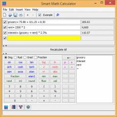 Keywords: scientific calculator download, computer calculator download, math calculator, download calculator, online calculator, free calculator, simple calculator, scientific calculator, advanced calculator, buy calculator, equation calculator, online scienti It may not be obvious but using a calculator can waste hours of your time and hinder your productivity. Smart Math Calculator has a unique and efficient user-interface that allows you to type in your calculations super fast, avoid common calculation mistakes, and be more productive overall thanks to the following key features: - Type down equations just as you would in a text document. After each key stroke the result is immediately calculated and displayed. You don't even need to press enter. - If you make a mistake you can edit the equation just as you would in a text document. The calculated result is immediately updated. - You can calculate and edit multiple expressions simultaneously. - Create your own variables and reuse them in upcoming calculations. If you edit the value of a variable, the result of all calculations that depend on that variable will be automatically recalculated. - With a click of a button you can enable the OnTop feature to keep the calculator on top of other windows so that you can easily copy and paste number between the calculator and your documents. - Your calculations are automatically saved and reloaded the next time you start the app. - You can save a bunch of calculations in a file and re-open them later. - Most other calculators can only handle 15 digits precision whereas this calculator can compute numbers up to 1,000 digits precision. - For faster access, the calculator can automatically start and run in the background so it can instantly pop up when needed. If you enable this feature, a small icon will always be visible to allow convenient access with a single click.