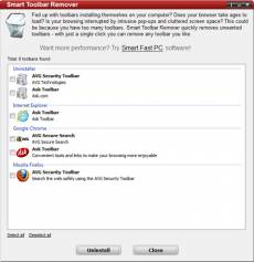 All copyrights to Smart Toolbar Remover are exclusively owned by the company - Smart PC Solutions, Inc. Smart Toolbar Remover may be freely distributed, provided the distribution package is not modified, without written permission from the copyright holder. You may not clone, rent, lease, sell, modify the software. Any such unauthorized use shall result in immediate and automatic termination of this license and may result in criminal and/or civil prosecution. Once registered, the user is granted a non-exclusive license to use Smart Toolbar Remover on one computer, for any legal purpose, at a time. The registered Smart Toolbar Remover software may not be rented or leased, but may be permanently transferred, if the person receiving it agrees to terms of this license. If the software is an update, the transfer must include the update and all previous versions. SMART TOOLBAR REMOVER IS DISTRIBUTED "AS IS". NO WARRANTY OF ANY KIND IS EXPRESSED OR IMPLIED. YOU USE AT YOUR OWN RISK. THE AUTHOR WILL NOT BE LIABLE FOR DATA LOSS, DAMAGES, LOSS OF PROFITS OR ANY OTHER KIND OF LOSS WHILE USING OR MISUSING THIS SOFTWARE. Installing and using Smart Toolbar Remover signifies acceptance of these terms and conditions of the license. If you do not agree with the terms of this license you must remove Smart Toolbar Remover files from your storage devices and cease to use the software. Ratio: Back Top