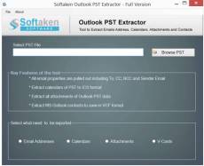 Company: Softaken Country: United States of America, Florida, St Augustine ASP member: No Company Web site: http://www.softaken.com/ Application info: http://www.softaken.com/outlook-pst-extractor Author: Smera Smith Sales email: pad@softaken.com Support email: pad@softaken.com License type: Shareware Class: System Utilities::File & Disk Management Specific: Categories: Utilities :: System Utilities, Utilities :: File & Disk Management, Internet :: Tools & Utilities, Email :: Mailing List Tools, Email :: Clients, Communication :: E-mail Platform: Windows OS: Win2000, WinXP, Win7 x32, Win7 x64, Windows 8, Windows 10, WinServer, WinOther, WinVista, WinVista x64 System requirements: Pentium II 1 Ghz, 1GB RAM, Minimum 512 MB Space Language: English Limitations: Export only first 10 items from each folder
