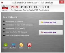 Distribution permissions: Trial version of Softaken PDF Protector can be freely distributed over the internet with no charges.
