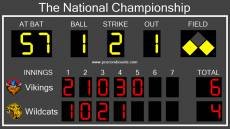 Keywords: scoreboard, scoreboard download, computer scoreboard, software scoreboard, virtual scoreboard, scorekeeping, score, scroring, software, board, scoring, time, download, timing, clock, app, system, projection, projector, program, application, desktop Use the computer and display you already have with our softball scoreboard software to transform your pc into a virtual softball scoreboard. Our scoreboard download is great for scorekeeping softball games on fields, or in multipurpose facilities. Softball Scoreboard Pro features a simple to use mouse and keyboard interface, allowing for easy control of all functions of the computer scoreboard. Softball Scoreboard Pro is an inexpensive and portable alternative to costly physical scoreboards. Using our software scoreboards offers the flexibility to switch between different sports using the same hardware, which fixed scoreboards cannot match. Our Softball Scoreboard Pro software is shareware, so you can try our scoreboard download for FREE before purchasing. FEATURES: Easily accessible full screen mode Optional secondary control screen Click and type interface for easy control Fully customizable scoreboard colors Customizable team names and logos for easy identification High visibility LED digits Clean and simple design allows for easy reading by spectators Fits most monitors by adjusting to different display resolutions Portable USB key allows you to quickly and easily move registration between computers INCLUDES: Team runs for each inning Auto totaling runs count Team names Team logos At bat/pitch count Ball count Strike count Out count Field (base) display/scoreboard picture Scoreboard title The optional web remote feature allows you to control all information on the scoreboard from most any wireless device that has a web browser. OPTIONS: Customizable keys make controlling the scoreboard quick and easy COLOR OPTIONS: Easy to use options allow you to customize every color to match your team's colors TEAM OPTIONS: Home and visitor team names can be customized, and team logos can be displayed SOUND OPTIONS: Change the buzzer and horn sounds to use your own audio files OTHER OPTIONS: See www.pcscoreboards.com