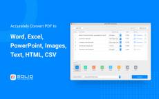 Keywords: Solid Converter, pdf to word, pdf to excel, pdf to ppt, pdf txt, pdf to png, convert pdf, pdf to rtf, pdf to image Solid PDF Converter is a smart, powerful and user-friendly converter tool that makes PDF to Office conversion easy: converts PDF files into fully-editable Microsoft Word (.docx), Excel (.xlsx), PowerPoint (.pptx), plain text files (.txt), CSV (.csv), HTML (.html), Images (.jpeg/.png) and more on your macOS Offline. The PDF to Office converter will preserve your original texts, images, formats and layout without any changes. Solid Converter converts your large files in a second, after conversion, you can edit and reuse all contents, saving your time and smoothening your workflow. Key Features: > The Professional PDF Converter PDF to Office Converter, easily convert your PDF documents to fully-formatted and editable Word, Excel, PPT with well preserved texts, images, tables, header and footers and all formats and layout. PDF to JPEG and PNG converter, the best PDF to image converter with high quality and resolution. No file size limit nor registration is required. Perfectly export PDF files to Text, HTML, CSV in a second. Output PDF files to Microsoft Office 2007 version, which can be opened in 2007 Microsoft Office Word, Excel and PowerPoint apps. iWork Pages required to create .pages documents from converted .docx documents. > Batch Conversions Drag & drop to add files or select multiple PDF files into the converting list and convert all documents at the same time. > Quality Conversions Save time on reformatting and reworking your converted files. > High-speed Conversions Converting large PDF files only takes one minute. > Easy-to-use & User-friendly > Concise and clear interface > Conveniently import PDF files with Drag and drop operation > Export multiple files simultaneously with one click