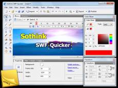 Sothink SWF Quicker is a powerful Flash Editor to edit SWF directly or export flash and HTML5 with easy. It supports Flash CS5, ActionScript 3.0, shape design, rich format text editing, movie clip and button creation, general or guided motion tween, built-in effects, mask layer, stream sound and event sound, Flash video, importing JPEG/BMP/Animated GIF/PNG and much more. Besides using its own shape drawing tools, you can also import other popular vector formats including AI, SVG and WMF/EMF and use them in the software. As known, it provides the same vector editing capability as Adobe Flash does but costs much less.