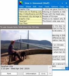 Keywords: clipboard, multiclipboard, multi-clipboard, multi clipboard, screeen shot, screen capture, pim, organizer Typing something youve typed before? Searching for that graphic file, web address or phone number you know you have somewhere? Want to browse your digital photos and paste them straight into your email or word processor? You need Spartan. Spartan isnt just a multi clipboard. It's a complete information center for your PC. You can save: Often used text Form letters to paste into emails or word processors. Graphics Screen shots (There's an Inbuilt graphics editor to add text Etc.) Web pages Addresses Phone Numbers Email addresses To do lists Prompts for tele-sales operators Notes for business contacts Students web research Recipes, poems, jokes, shopping lists, scripts......... Virtually anything you need to remember. You can make things easy to find, You can arrange things visually by position or by color and you can sort any group alphabetically. And when you come to reuse your clips. Spartan shows a preview of each clip and provides you with: A picture browser for your digital photos A browser launch button when the clip contains a web address An email launch button when it contains an email address A dial button when it contains a phone number And a run or open button where it is a program or file on your computer. The Lite Version has no time limit and no nags.