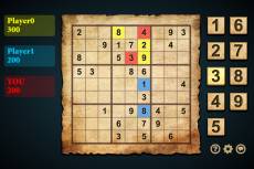 Keywords: blank, block, digit, deduce, grid, logic, math, mathematics, multiplayer, number, puzzle, solution, square, sudoku, logic games, sudoku battle, sudoku games, multiplayer games, multi player games Beat against the clock and defeat your ambitious opponents to earn the glorious title! In this game for 2 to 4 players, your goal is to fill in the blanks with numbers 1 to 9 such that the numbers will not be repeated in each row, each column, and each 3x3 square. When the game starts, you will be given a 9x9 grid, which is evenly divided into 9 squares. Some of the blocks are already filled by numbers, while the others are blank. A number pad is placed on the right of the screen, and you can click a number to fill a blank on the grid. Each correct answer gives 100 points, but for each wrong number you will lose 300 points. Since you and your opponents will work simultaneously, you need to act quickly or the trophy will slip away!