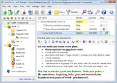 Keywords: to-do list, to do list, todo list, task list, task management, project management, checklist, notes, PIM, task manager, task organizer, tasks manager, notes manager, todo list manager, to do list manager, organizer, to do list organizer, tasklist Number one to-do list software for Windows suitable for personal and business use. All your tasks and notes in one place. Powerful yet simple and easy to use. Can be used as a light-weight project management tool. Swift To-Do List has many unique features and it has been developed and improved for more than 8 years. No other tool even comes close. Swift To-Do List has all the features you will ever need, but it is still simple and easy to use. The supported features include: - Both for tasks and notes - Organize to-do lists hierarchically in a tree with icons - Subtasks support, break down complex tasks into small action steps - Zero learning time, superbly intuitive and easy to use - All the fields you will need. Fully hide any fields that you don't need (unique feature!). Supported fields include: Task Name, Priority, Type, Due Date, Start Date, Completion Date, Context, Assigned To, Time Estimate, Time Spent, Percent Done, Status, Creation Date and Last Changed Date. - Incredible reminder support. Set reminder for any of your tasks easily. - Recurring tasks support - Runs from USB thumb-drive - Task attachments - Tasks archive (view history, recover deleted tasks) - Reorder your tasks and to-do lists easily using drag & drop - Clipboard support (copy, cut & paste your tasks, notes and to-do lists) - Undo/redo - Flexible export & printing options - Helpful view modes and filters - Work with multiple tasks at once - Email your tasks - Fully customize anything (not just the whole interface, but the inbuilt task priorities, etc) - Protect your database with strong encryption - You can hide any unneeded features to keep the program simple and lightweight (unique feature!) - And much(!) more Swift To-Do List is the best tool to enhance your productivity and to get organized. There is nothing else like it. Why don't you find out why thousands of happy customers are so enthusiastic about it? Just download the free trial and see for yourself.