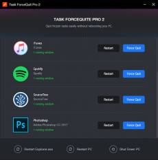 Keywords: task manager, task killer, force quit on pc, force quit windows, force quit a program on windows, force close a program, advanced task killer, stop apps from running, task killer windows Task ForceQuit 2 helps you optimize your CPU by quitting the apps that you no longer use. Many times you just need a little more memory to run a hefty game or an application. Task Force Quit 2 is an advanced task killer. It tells you what apps you can close without ending an important task. You can also view & force close Windows programs, that are quietly running in the background. This results in a muuuuch faster loading of games & software. Unlike Windows Task Manger Task Force Quit 2 stays very minimalistic! Once launched, it gives you a quick overview of all the running apps. All you need to do is to simply select any of them and click Restart' or Quit. The utility also remains in your system tray and you can force close any Windows program right there, simply by right-clicking on it. Task Force Quit Pro 2 is now available for all Windows systems, including the latest Windows 10. It also features new easy-to-use user interface and can easily be launched with a shortcut (Cntrl+Shift+Q). All things considered, Task ForceQuit Pro 2 is an easier, faster way to force quit on Windows. It optimizes your CPU and makes sure that your task management stays clear and transparent. Try it now!