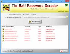 Company: SecurityXploded Country: India, Karnataka, Bangalore ASP member: No Company Web site: http://SecurityXploded.com Site of program: http://securityxploded.com/ Application info: http://securityxploded.com/the-bat-password-decoder.php Author: SecurityXploded Organization Sales email: contact@securityxploded.com Support email: contact@securityxploded.com License type: Freeware Class: Security & Privacy::Password Managers Specific: Utilities Categories: Platform: Windows OS: Win2000, WinXP, Win7 x32, Win7 x64, Windows 8, Windows 10, WinServer, WinOther, WinVista, WinVista x64 System requirements: Language: English Limitations: