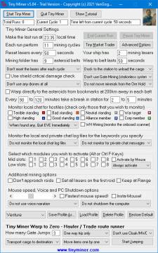 Company: TinyMiner EVE Online Mining Bot Country: Romania, MH, Drobeta Turnu Severin ASP member: No Company Web site: http://www.tinyminer.com Site of program: http://www.tinyminer.com/ Application info: http://www.tinyminer.com Video: http://www.youtube.com/watch?v=aC5915dJtRg Author: TinyMiner Eve Mining Bot by VanGogh Gaming Sales email: support@tinyminer.com Support email: support@tinyminer.com License type: Demo Class: Games & Entertainment::Tools & Editors Specific: Games Categories: Games :: Gaming Tools, Games :: Mods & Scenarios, Games :: Patch & Updates, Games :: Guides, Games :: Online Platform: Windows OS: Win2000, WinXP, Win7 x32, Win7 x64, Windows 8, Windows 10, WinServer, WinOther, WinVista, WinVista x64 System requirements: Minimum Req for EVE Online: CPU 1.5 Ghz, 1 GB RAM, Shader Model 3.0 Graphics, Internet connection Language: English Limitations: Fully functional trial version (performs one full mining run). The registered version performs as many runs as you want!