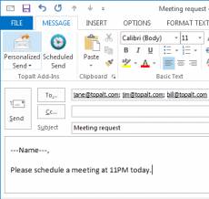 Keywords: office, outlook, add-in, emoticons, insert, compose There's no longer a need to hire an expensive email marketing firm to get your message across, because now you will have the capability of quickly sending mass emails while retaining the individuality of each message. You clients want to feel special, but by sending a mass email with everyone's address listed on the To line can cause potential sales to plummet thanks to a receiver feeling lost in the mix. Our Outlook personalized send button will eliminate these reactions, letting your customer know the message is specifically targeted for them and that you value their attention. You work hard to produce meaningful messages that you know they want to read, so make sure that first message impression is the one that counts.