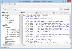 Keywords: Decompiler, Visual Basic, VB VB Decompiler is decompiler for programs (EXE, DLL or OCX) written in Visual Basic 5.0 and 6.0 and disassembler for programs written on .NET technology. As you know, programs in Visual Basic can be compiled into interpreted p-code or into native code. .NET assembly always compiled to just in time compilable IL code. Since p-code consists of high-level commands, there is a real possibility to decompile it into the source code (of course, the names of variables and some functions will not be decompiled). VB Decompiler restores source code from p-code as much as possible precisely. And after some modifications you may try to compile generated code. If a program was compiled into the native code, restoring full source code from machine instructions is not possible. But VB decompiler can help to analyze the program even in this situation as well. It contains a powerful disassembler and emulator. This powerfull engine try to decode most assembler instructions to most likely VB commands. Of course, it fails on some optimizations of assembler code and sometimes generate not correct instructions. But at this time this is a best way to analyze native code applications. If a program was compiled to .NET assembly, decompiler will recovery all tables and modules in managed assembly and disassemble all methods, functions and events using IL disassembler. .NET FrameWork is not needed for decompilation. Decompilation supported on all Windows 32 bit operation systems. In general, VB Decompiler is an ideal tool for analyzing programs and it is perfect if you lose the source code and need to partially restore the project.
