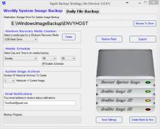 Keywords: Automated Multi System Image Backup, Window7 backup, Windows8 backup, Windows10 backup The backup strategy incorporates both automatic creation of system images & more frequent incremental file data backups It is possible to easily create and maintain multiple system images automatically on a weekly schedule or manually create them as needed System Image(s) and file backups may be stored on different storage locations. I wanted 'set & forget', so older system images will be removed automatically. I also wanted a single GUI(Graphic User Interface) for access to all the features I needed, an interface that for me is old school intuitive. Make a Windows Recovery media for those times when you can't boot your computer and or need to restore your system to a new hard drive. Yes you can select & restore individual files from your system image. Your computer will wake from sleep or hibernation mode to create the system image backup, but not while it is running on battery or if you have shutdown your computer. If your computer is 'on' at the time of the scheduled backup, it will remain on after completion of the system image backup, conversely if 'sleeping/hibernated' (not 'Shutdown') it will enter 'sleep' mode on completion of the system image. You can receive an email notification of the status of the backup. I have available both a free version that should meet most people needs in terms of redundancy as well as an affordable paid version with greater flexibility. Please visit vgain.net for more details and or to view a video tutorial.