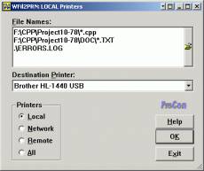 Keywords: File to Printer, Copy to USB Printer, Default Printer, List Printers, Show Local, Network, Remote printers, Print to USB printer WFil2PRN is a Windows' utility designed to copy raw data files directly to a printer. It is primarily for users who need to print text files, log files, and PCL files, etc. WFil2PRN allows you to:- * use multiple wildcarded file pathnames, * browse to select individual file sets, * send the output to any Windows' printer (USB, local, networked, etc.), * display a list of installed printers, * resize and reposition the dialog - even on multi-monitor systems, * save file lists and printer selection between sessions. The dialog can be resized - and repositioned - even on multi-monitor systems. The program automatically saves your settings and preferences and restores them when it is run again.