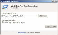 Company: WebRunApps Country: Greece, Crete, Heraklion ASP member: No Company Web site: http://www.webrunapps.com Site of program: http://www.webrunapps.com Application info: http://www.webrunapps.com/webrunpro.html Author: Ioannis Koutsaftakis Sales email: info@webrunapps.com Support email: info@webrunapps.com License type: Shareware Class: System Utilities::Launchers & Task Managers Specific: Categories: Utilities :: Launchers, Internet :: Browser Utilities, Internet :: Miscellaneous, Web Development :: Miscellaneous Platform: Windows OS: Win2000, WinXP, Win7 x32, Win7 x64, Windows 8, Windows 10, WinServer, WinOther, WinVista, WinVista x64 System requirements: Windows XP and later. Language: English Limitations: No support for command line parameters, no support for double quotes (commands that include spaces), no whitelist feature, no confirmation feature.