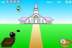 Keywords: 籃, 籃子, 祝福, 炸彈, 花球, 花束, 箱, 箱子, 新娘, 典禮, 禮拜堂, 教堂, 花朵, 結婚, 婚姻, 結婚典禮, 婚禮, 新娘花球, 新娘花束, 婚禮花球, 動作遊戲 您希望接收祝福還是惡作劇?在這個遊戲裡,您的任務是接下新娘拋出的花球,並且避免炸彈發生爆炸。遊戲開始時,新娘會從禮拜堂裡拋出花球,而您需點擊該些花球,並把它們拖放到位於右下方的花籃裡。每一束放到籃子裡的花都可令您獲得200分。您在開始時會有5次生命,在畫面的左上方顯示。當炸彈出現時,您就需要在它著地之前把它接著,然後放到畫面左下方的木盒裡,否則就會被扣減一次生命。當所有生命都用完,遊戲就會結束。迎接新娘的祝福吧 ─ 也許您就是下一位步進教堂的幸運兒!.................................................................................................................................................................................................................................................................................