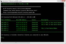 Keywords: wifi command-line security tool, wifi security guard, wifi security monitor, wireless security guard, wireless security monitor, wireless command-line security tool, wifi command-line network tool WiFi Security Guard is the free command-line tool to monitor and shield your Wireless Network from hackers and unauthorized users. It's swift ARP based multi-threaded scan helps you to perform quick scan of your entire network in few seconds. You can either do automatic scan of your local network or manual scan of selected portion of the network. For each discovered system it displays following information, # Host IP Address # Host MAC Address # Connection Status # Description Along with above details, it also automatically identifies your local computer or Router/Modem among discovered devices. Being command-line tool makes it easy for automation. If you are looking for GUI version, check out our Wi-Fi Network Monitor Wi-Fi Security Guard is fully portable and works on all platforms starting from Windows XP to Windows 10
