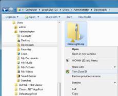 ZoneIDTrimmer helps to detect and remove an alternative data stream (Zone.Identifier) stored by Windows in files downloaded from the Internet or email attachments saved on your disk, causing a security warning when these files are used. To learn more about Windows XP Attachment Manager see Microsoft knowledge base article #883260. After installing this software affected files and folders containing such files will be marked in Windows Explorer with an exclamation sign and "Trim Zone ID" command will be added to the context (right click) menu. Using this command you can get rid of Zone.Identifier stream in selected file or folder and prevent security warnings. Note ZoneIDTrimmer doesn't change the content of your files.