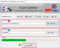 Keywords: vcard splitter, break vcf file, vcf file splitter, vcf to multiple vcf, split single vcf to multiple vcf, split one vcf to multiple, split vcard file, vcf splitter utility, split vcf into multiple files, reduce vcf file eSoftTools VCard Splitter Application is most powerful and advanced tool, inbuilt with simple GUI interface that easily interacts with no-voice users to easily operate and split vCard file in single mouse click. Split VCF into multiple individual VCF contact file This VCF file splitter software designed to handle largest-to-largest and unlimited count of VCF contacts and break VCF file from single VCF to multiple VCF file without losing any single bit data. Intact each field of Contacts Data- The software works very closely and read every bit of vCard contact data and split the same with 100% accuracy. The software is already tested over 200MB of VCF file and extract more than 10 million of contacts. How to Reduce VCF file size The best and reliable way of reduce VCF file is to split VCF file into multiple VCF files. All these things can easily do with single click by eSoftTools vCard Splitter Software. The VCF / vCard Splitter software split vCard file to multiple VCF contact file without any hassle. The tool has much implausible functionality as well as that it also converts VCF contact files to multiple vcf file which can easily handle. eSoftTools VCard splitter software easily break VCF file and also maintain and care for properties to vCard file such as First Name, Last Name, Phone Number, Email Address, Mobile Number, Web Links and images and can also save other all information of VCF file.