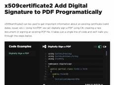 Keywords: x509certificate2, add digital signature pdf programmatically, sign pdf c#, c# sign pdf, c# pdf signature, c# sign pdf with certificate, c# x509certificate2, x509certificate2 c#, c# digital signature pdf, add digital signature to pdf in c# An x509certificate2 certificate is an encryption certificate used to digitally sign PDF documents. This allows us to encrypt them, ensuring that they have not been edited or altered in any way. It's a form of digital signature, ensuring that the end user receives an unedited PDF document so that you can ensure that your content is being delivered verbatim without being edited by third parties along the way. IronPDF fully supports digital signatures within .Net applications. It allows us to sign PDF documents in .Net framework and .Net core applications whether they're desktop or web applications. First we use IronPDF to create a new PDF signature from a PFX file. That is an encryption, that's an encryption certificate file. We then sign any existing PDF file. There are code examples on ironpdf.com. You can use either the dot PFX or dot P12, x509certificate2 digital certificate are both supported by arm PDF. These represent the latest standard in PDF signing and are generated for free from within Adobe viewer. Yes, it can, and there are two ways to do this. One way is to append HTML. Taking your handwritten signature as an image, rendering it as within the HTML to PDF rendering and adding that image to your PDF document. You may then additionally digitally sign the document with an encryption certificate. Alternatively, and the more standard way of doing this is while you were signing with an x509certificate2, you may add a handwritten signature image to the signature. This will show up in Adobe Reader very clearly so that people can see a handwritten signature and the digital encryption certificate without physically amending the PDF. IronPDF can be used to sign PDFs in any type of .Net framework or core application including desktop, console, aziar, Docker and web applications. We have full support for .Net core MVC, and traditional web forms, ASP x SP .Net projects.