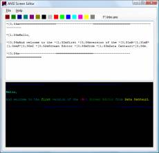 The ANSI Screen Editor is designed to let you easily create documents and images by adding ANSI color codes to text. It is intended for those who want to create simple ANSI and ASCII art.