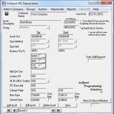 AcQuest HQ Depreciation is shareware. AcQuest Programming Solutions does not expect payment for the ordinary use of the unregistered Version to calculate and print depreciation schedules on individual PCs or local area networks. AcQuest HQ Depreciation must be distributed unmodified in its ahqdprnz.msi form. AcQuest HQ Depreciatio has been limited in function by the disabling of the roll forward function. At the beginning of the following year, accumulated depreciation and the company year end will have to be manually reentered, which may be difficult and time consuming. The full feature version with the roll forward function can be purchase from AcQuest Programming Solutions for $40. END USER LICENSE AGREEMENT READ THIS LICENSE AGREEMENT CAREFULLY, IT IS A BINDING LEGAL DOCUMENT. By using the software (AcQuest HQ Depreciation), you are agreeing to the terms of this license. This license agreement applies to both the unregistered and registered version of the software. In the case of an upgrade to the registered version, this license will continue to apply. LICENSE In return for trying the unregistered version and/or paying for the registered version, this software and included documentation are licensed, not sold, to you by AcQuest Programming Solutions. This is a non-exclusive and personal License. If AcQuest Programming Solutions has elected to provide a CD-ROM to you, the CD-ROM is your property, but AcQuest Programming Solutions retains all rights to all intellectual property. You have the right to use the software on the harddrive of a single computer. AcQuest Programming Solutions claims all copyrights to the software except that you may make one copy of the software for backup purposes. UPGRADING TO THE REGISTERED VERSION All sale of license keys are subject to AcQuest Programming Solutions approval. PROHIBITIONS You may not distribute, rent, sell, reverse engineer, or decompile the software. You may not place the resistered version of the software where it is widely available for use or download, such as bulletin boards, online services or the Internet. TERMINATION This license will terminate immediately without notice if you fail to meet the terms of this agreement. Upon termination, you must immediately cease use of the software, return all original materials to AcQuest Programming Solutions, and destroy all copies of the software. DISCAIMER OF ANY AND ALL WARRANTIES THE SOFTWARE IS PROVIDED "AS IS" WITHOUT WARRANTIES OR CONDITIONS OF ANY KIND. YOU EXPRESSLY AGREE AND ACKNOWLEDGE THAT YOU USE THE SOFTWARE AT YOUR OWN RISK. ACQUEST PROGRAMMING SOLUTIONS DISCLAIMS ANY AND ALL WARRANTIES, CONDITIONS, OR REPRESENTATIONS (WHETHER EXPRESS OR IMPLIED, ORAL OR WRITTEN) IN REGARDS TO THE LICENSED SOFTWARE, DOCUMENTATION, OR RESULTS OF THE SOFTWARE INCLUDING IMPLIED WARRANTIES OR CONDITIONS OF TITLE, NON-INFRINGEMENT, MERCHANTABILITY, OR FITNESS OR SUITABILITY FOR ANY PURPOSES WHETHER OR NOT ACQUEST PROGRAMMING SOLUTIONS HAS REASON TO KNOW OF SUCH PURPOSE. LIABILITY LIMITATION Under no circumstances will AcQuest Programming Solutions be liable for special or consequential damages related to use of the software, including negligence cases. In jurisdictions where limitation of liability is not allowed, AcQuest Programming Solutions liability for all types of damages will be limited to the purchase price of the software. SEVERABILITY If any part of this License is deemed to be unlawful, void or otherwise unenforceable, then that provision shall be severable and the remaining provisions of the License shall be valid and enforceable. GOVERNING LAW This licenses shall be governed and construed by the law of the State of Texas. This is the entire agreement between the parties and it shall not be modified without a written agreement, signed by both parties. Ratio: Back Top
