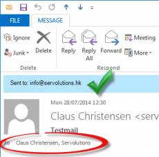 Incluso peor: cuando trata de ver los detalles sobre el destinatario, Outlook le mostrará solamente las entradas en su directorio activo, pero no cual fue la dirección de correo exacta usada por el remitente.