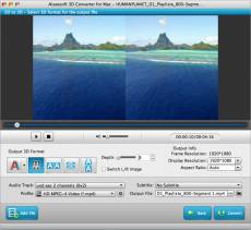 2.Convertir des vidéos 3D en vidéos 3D Avec l’aide d’Aiseesoft 3D Converter pour Mac, vous pouvez convertir une vidéo 3D côte à côte (demi-largeur / complète), supérieure et inférieure (demi-hauteur / complète) en d'autres types de vidéos 3D comme Anaglyphe, Côte-à-côte - Largeur) 3D, côte à côte (complète) 3D, supérieure et inférieure (demi-hauteur) 3D ou supérieure et inférieure (complète).