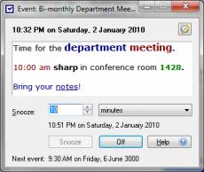 Company: 12noon Country: United States of America, IL, Chicago ASP member: No Company Web site: http://12noon.com Site of program: http://12noon.com Application info: http://12noon.com Author: Stefan Tucker Sales email: sales@12noon.com Support email: sales@12noon.com License type: Shareware Class: Desktop::Clocks & Alarms Specific: Utilities Categories: Home & Hobby :: Calendars & Planners, Business & Finance :: PIMS & Organizers, Business & Finance :: Utilities, Utilities :: Miscellaneous Platform: OS: WinXP, Win7 x32, Win7 x64, Windows 8, WinServer, WinVista, WinVista x64 System requirements: Windows Vista, 7, 8, 8.1, or later Language: English Limitations: All features are available. User is limited to five alarms at one time.