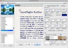 Keywords: plug-ins, Photoshop plug-ins, RichText, special effects, filters AlphaPlugins introduces RichText plug-in for Adobe Photoshop and compatible programs. This filter lets you add multi-line text and/or paragraphs to Photoshop compositions and apply effects for impact and interest. Create formatted text using the built-in text editor, copy and paste text from i.e. MSWord or load it from a RTF file. With a variety of powerful, built-in features, RichText makes it easy to add, decorate and randomize text in Photoshop to full effect. If Photoshop's composition has a selection then the formatted text fill be accuratelly filled inside this area