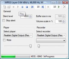 Possibilités: 1. Enregistrement des données d'audio: - Enregistrement des données d'audio décomprimées(PCM); - Enregistrement des données d'audio comprimés: IMA ADPCM, Microsoft ADPCM, CCITT-Law, CCITT U-Law, GSM 6.10, MPEG Layer-3 (mp3) et les autres; - Prise de son des données dans le courant fichier, mémoire; - Arrêt et reprise de l'enregistrement ; - Obtention de la position courante; - Enregistrement des données sur tout appareil enregistreur, installé dans le système ( quelques fiches daudio). 2. Reproduction des données d'audio: - Reproduction des données d'audio décoprimées(PCM); - Reproduction des données d'audio comprimées; - Reproduction des données du courant( courant fichier, mémoire); - Reproduction des données d'audio mélangées; - Arrêt et reprise de la reproduction; - Retour de la position courante; - Reproduction de données de tout player, installé dans le système( quelques fiches daudio). 3. Règlage de mélangeur: - Choix de la ligne le source d'enregistrement; - Changement de volume le source d'enregistrement; - Règlage des élément de contrôle additionels. Par exemple, 'Mic Boost'; - Changement de niveau de volume de la reproduction; - Couper le son. 4. Mise au point: - Changement du volume et de la vitesse des données sonores; - Groupement de quelques fragments d'audio en un; - Couper/ajouter/enlever fragment d'audio du courant; - Groupement de deux mono courants d'audio en un courant stéreo. 5. Transformation de courant wave en courant mp3. 6. Transformantion du courant Dialogic .vox (adpcm) en courant Mp3. 7. Transformation de courant Wav en courant MP3, si le courant contient le données de MPEG Layer 3. 8. Cohésion de fichiers d'audio.