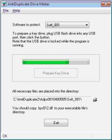 Keywords: SDK, key, drive, dongle, distribution, protection, software, antipiracy, C, C#, VB.NET, VB, Delphi, WinDev, PowerBASIC, programming In today's software distribution, there is an increasing need to protect applications against illegal copying. AntiDuplicate is the fast and easy tool to create hardware keys for your software protection - by your ordinary computer. With AntiDuplicate, software developers prepare hardware keys (dongles) from ordinary USB flash drives! The result is the durable compact media for software distribution and the USB token for anti-piracy protection at the same time. AntiDuplicate determines specific physical characteristics for each USB flash drive. Due to this, your application can examine if the USB drive is your original drive or the copy. AntiDuplicate Professional Edition allows to set USB drive's write protection at hardware level (compatible with some USB drive's configurations). AntiDuplicate SDK contains instruments and samples for Visual C++, C#, Visual Basic, VB.NET, PowerBASIC, WinDev, Visual FoxPro, PureBasic, REALBasic (REAL Studio), Free Pascal Compiler (Lazarus), HTBasic, Intel Visual Fortran, Borland Delphi and C++ Builder developers. Each SDK package is unique for each application! By using the SDK samples, you need to modify your executable file sources to enable reading the identification information from the USB drive. AntiDuplicate Drive Maker has supremely simple user interface and allows you to create a key USB drive in seconds. Unlike traditional dongles, AntiDuplicate drives do not require any drivers or special installation, and they can still be used as USB mass storage devices. The Demo version contains Demo Drive Maker and Demo Drive Tester, so you can create a special demo drive and check it out.