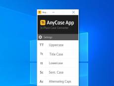 Company: Yaron Elharar Country: Israel, Israel, Ramat Gan ASP member: No Company Web site: https://sugarsweetapps.com/ Site of program: http://Anycaseapp.com Application info: https://anycaseapp.com/ Video: https://anycaseapp.com/video/latest_version/ Author: Yaron Elharar Sales email: info@sugarsweetapps.com Support email: info@sugarsweetapps.com License type: Shareware Class: Business::Calculators & Converters Specific: Categories: Business & Finance :: Calculators & Converters, Business & Finance :: Word Processing, Business & Finance :: Office Tools, Business & Finance :: Presentation Tools, Business & Finance :: Utilities, Internet :: Browser Utilities, Utilities :: Miscellaneous Platform: Windows OS: Win2000, WinXP, Win7 x32, Win7 x64, Windows 8, Windows 10, WinServer, WinOther, WinVista, WinVista x64 System requirements: Windows 10, 8.1/8/7 Language: English Limitations: Free 80 Monthly Uses (20 Weekly), Pro Version Available, more details on the site
