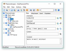 Company: RomanLab Co. Ltd. Country: Canada, BC, Vancouver ASP member: No Company Web site: http://www.romanlab.com/ Site of program: http://www.anypassword.com/ Application info: http://www.anypassword.com/pro/ Author: Roman Nikolaev Sales email: info@romanlab.com Support email: info@romanlab.com License type: Shareware Class: Security & Privacy::Password Managers Specific: Utilities Categories: Security Tools :: Password Managers, Utilities :: Security & Encryption, Internet :: Tools & Utilities, Internet :: Browser Utilities Platform: Windows OS: Win2000, WinXP, Win7 x32, Win7 x64, Windows 8, Windows 10, WinServer, WinOther, WinVista, WinVista x64 System requirements: No special requirements Language: English Limitations: Limited number of records