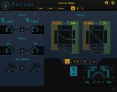 Keywords: Arcane Delay, delay, delay plugin, vst 3 Arcane Delay is audio fx plugin which create and manipulate with echoes in easy way. Contains two filters for each signal side (left and right). It is not classic feedback delay, each delay is individual. Instead control each delay separately, only start and end state of delay is set. Process between start and end state can be linear or curved. With that options can be simulated classic feedback delay, and with filters make low or hi frequencies disappear in time.
