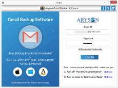 Company: Aryson Technologies Country: United States of America, CA, San Jose ASP member: No Company Web site: https://www.arysontechnologies.com/ Site of program: http://www.arysontechnologies.com/gmail-backup/ Application info: http://www.arysontechnologies.com/gmail-backup/ Video: http://www.youtube.com/watch?v=aJuoK9WaMCc Author: Aryson Technologies Sales email: admin@arysontechnologies.com Support email: admin@arysontechnologies.com License type: Shareware Class: System Utilities::Backup & Restore Specific: Categories: Utilities :: Backup Platform: Windows OS: Win2000, WinXP, Win7 x32, Win7 x64, Windows 8, Windows 10, WinServer, WinOther, WinVista, WinVista x64 System requirements: 1 GHz Processor, 512 MB RAM, Minimum 60 MB Space Language: English Limitations: Demo version of Aryson Gmail Email Backup tool capable of freely backup up to 50 email items from Gmail Account.