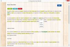 Company: Dr Assignment Country: Australia, QLD, Brisbane ASP member: No Company Web site: http://www.drassignment.com Application info: http://www.drassignment.com/auto-rewriter.html Author: Dr Assignment Support Sales email: support@drassignment.com Support email: support@drassignment.com License type: Shareware Class: Education::Languages Specific: Education Categories: Platform: OS: Win98, Win2000, WinXP, Win7 x32, Win7 x64, Windows 8, WinServer, WinOther, WinVista, WinVista x64, Other System requirements: N/A Language: English Limitations: