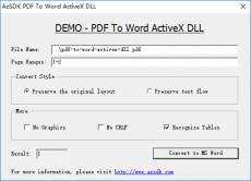 Keywords: pdf to word, pdf to doc, pdf to docx, pdf component, pdf sdk, pdf dll, pdf activex AzSDK PDF to Word ActiveX DLL can convert PDF file to DOC file (MS Office Word) easily in your applications. It is a standalone ActiveX DLL/Component and does not depend on Adobe Acrobat, or even Acrobat Reader. AzSDK PDF to Word ActiveX DLL is a collection of methods compiled, linked and stored in a ActiveX DLL file that is required for application development. The purpose of these methods is to convert files from the Portable Document Format (PDF) to Microsoft Word (DOC). The AzSDK PDF to Word ActiveX DLL allows programmatic silent PDF to Word conversions, giving you simple but incredibly powerful PDF conversion capabilities solutions. AzSDK PDF to Word ActiveX DLL can be easily integrated into applications written in languages that support ActiveX Component such as Visual C++, Visual Basic, Delphi, C++ Builder, .Net languages, Java, Scripts like Perl, PHP, Python. It is a standalone ActiveX DLL/Component and does not depend on Adobe Acrobat, or even Acrobat Reader. Key Features: *Accurate conversion of complex documents. *Convert images and most of PDF drawing primitives. *Recognize tables. *Support two optimization modes: preserve text flow or original format. *Support for all Unicode languages of PDF files. *Standalone, doesn't depend on Adobe Acrobat or Reader. *Support many development languages, such as VB Script, Java script, Perl, PHP, Python, ASP, ASP.Net, VB.Net, C#, VB, Delphi, VC++, Java etc. *More demos in other languages on request. *Support Windows XP, VISTA, 7, 8, 10 or Later. *Support Windows 32-bit and Windows 64-bit. *Royalty free, Use PDF To Word ActiveX DLL in your applications without needing to pay any royalty fees for distribution. *No limits on number of applications.