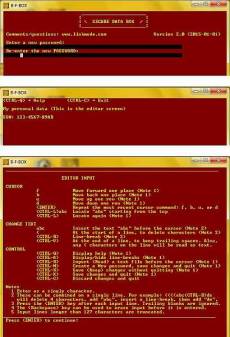 Keywords: secure, password, secure locker, encrypt, encrypted, secure data, encrypted, safe BFBOX is a 'secure data box' used to store sensitive user data such as usernames, passwords, lock combinations, account numbers, product keys, credit card numbers, PIN's and other identity numbers. The BFBOX program is a single file: BFBOX.EXE. Encrypted user data is stored inside the BFBOX.EXE file itself. Storage capacity is 16,000 characters of user data. This is a 16-bit application that runs on Windows 2000, XP, or 32-bit Windows 7. The encryption algorithm is Blowfish in CBC mode with 448-bit key. Refer to https://www.schneier.com. BFBOX includes detection and user alert for weak Blowfish keys. Encryption-key bytes with the high bit set are handled correctly. Decrypted user data is displayed to the monitor only; never written to disk. To install, execute (double-click) the distribution file BFBOX2_0.EXE. To uninstall, exit from the BFBOX program if it is running, then double-click on the file C:\DOS\linkmode\BFBOX\UNINSTAL.BAT