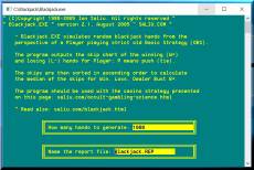 Company: Ion Saliu Country: United States of America, Pennsylvania, Gettysburg ASP member: No Company Web site: http://saliu.com/membership.html Site of program: http://saliu.com/blackjack.html Application info: http://saliu.com/blackjack.html Author: Ion Saliu Sales email: reason@saliu.com Support email: reason@saliu.com License type: Freeware Class: Games & Entertainment::Casino & Gambling Specific: Categories: Casino, Gambling, Games, Blackjack, Entertainment Platform: OS: WinXP, WinVista, WinVista x64, Win7 x32, Win7 x64, Win2000, WinServer, Win98, WinOther System requirements: It works best at the command prompt for best speed; all 32/64 bit versions of Windows supported. Language: English Limitations: No limitations.