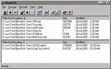 Keywords: braun, blowfish, security, encrypt, utility, encryption, decrypt, decryption, cipher, decipher BlowFish is a small, easy to use, file encryption utility. Simply drag and drop files and folders to quickly protect your sensitive documents, and then enter an encryption key to encode and decode the files you want to protect from prying eyes. Files can also be quickly encrypted and decoded directly from the MS Windows Explorer by using the pop-up context menu. This utility uses the Blowfish encryption algorithm. BlowFish can be configured to optionally place its program icon in the taskbar notification tray.